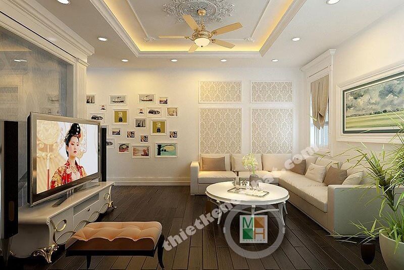 Thiết kế nội thất phòng khách phong cách tân cổ điển sang trọng, cao cấp