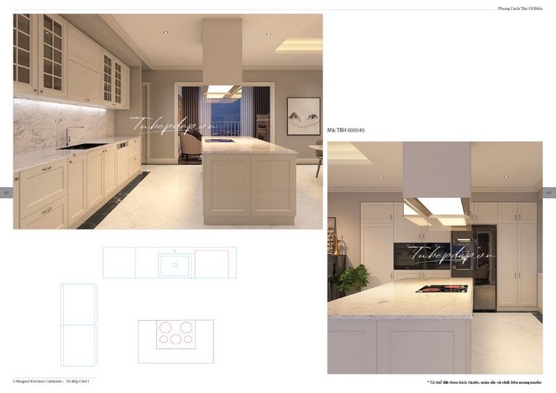 Việc thi công tủ bếp gỗ tự nhiên chữ I để làm đẹp các căn nhà phố, chung cư, biệt thự theo phong cách tân cổ điển.