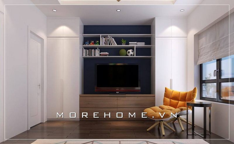 Thiết kế nội thất phòng ngủ hiện đại, sàn gỗ màu nâu trầm chủ đạo tạo cảm giác ấm cúng và thoải mái hơn